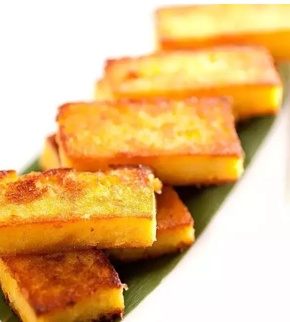 把水果玉米磨成粉漿,入盆加雞蛋和糯米粉調(diào)勻后,再倒在不銹鋼平盤內(nèi),入籠蒸熟便取出來切成塊,在油鍋里煎香便可裝盤上桌。